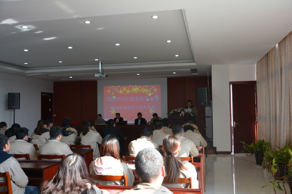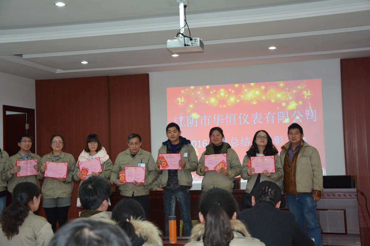 2017年1月23日,江陰市華恒儀表有限公司“2016年度總結(jié)與表彰大會”在公司大樓三樓會議大廳隆重舉行。公司董事長曹軍華先生、總經(jīng)理黃冬華先生、財(cái)務(wù)總監(jiān)耿敏女士及全體員工共聚一堂、回望總結(jié)、共賀勝利、展望未來。